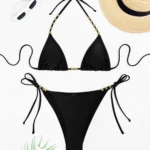 After slipping into this black bikini set adorned with delicate metal beads, you’ll feel an unparalleled sense of confidence wash over you, perfect for an unforgettable beach day. Imagine the warm sun on your skin as you stroll along the shore, each step echoing the carefree spirit of summer. This chic design effortlessly complements your silhouette, enhancing your magnetic allure.