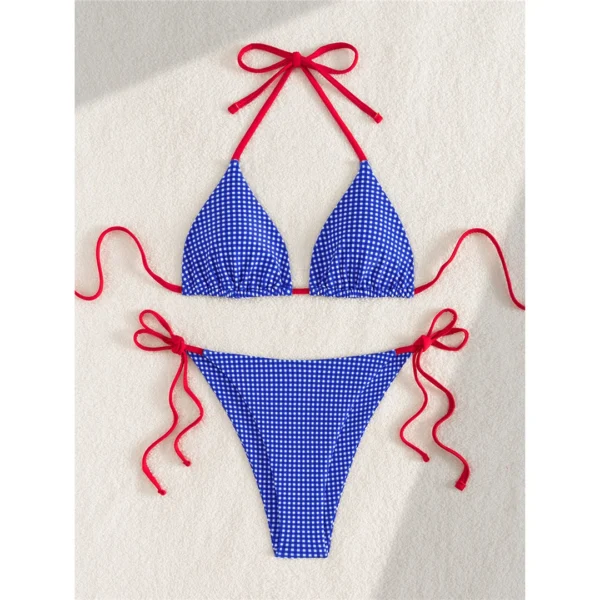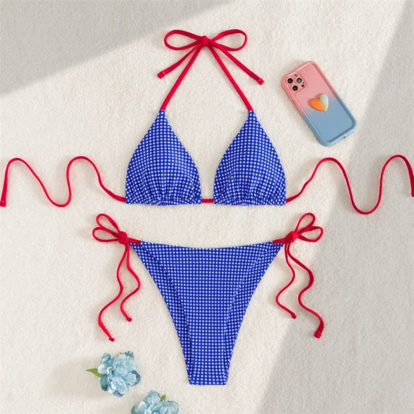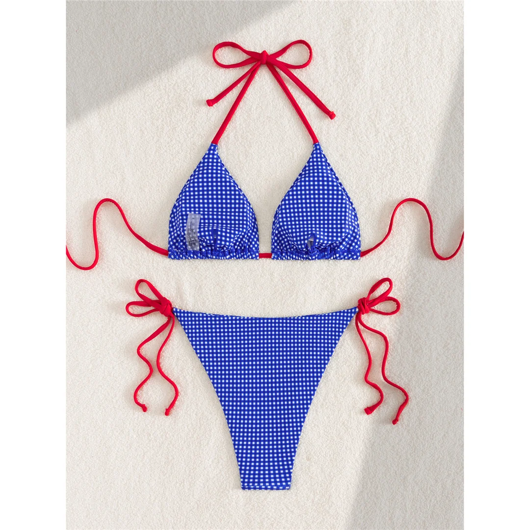 Fresh, flattering, and full of charm — the Cape Cod Plaid Cute Bikini is that effortlessly chic preppy bikini you’ll wear on repeat. The blue-and-white plaid print brings vintage seaside vibes, while the bold red ties give it a modern twist. Designed to accentuate your shape with adjustable halter strings and high-cut bottoms, it’s the perfect mix of playful and polished.