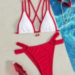 With its strappy design, this bikini set hugs your body in all the right places while providing a silhouette that flatters and excites. The playful knot detail adds a uniquely stylish touch, setting it apart from the usual beach staples. Imagine lounging by the water’s edge, feeling the gentle breeze against your skin, and turning heads as you flaunt this delightful piece. It’s not just a bikini; it’s an invitation to embrace your joyful spirit.