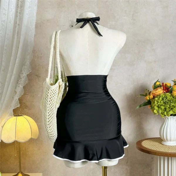 With its classic black shade, this swim dress is versatile enough to wear for a beachside brunch or sunbathing by the shore. The elegant cut elongates your legs, ensuring you feel poised and ready to make a splash, whatever the occasion.