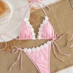 Imagine yourself surrounded by vibrant petals, the sun sparkling overhead as you drift into a relaxed state of bliss. The Cute Moments in Bloom Halter Triangle Bikini Set with Floral Accents captures that very essence, inviting you to embrace every cheerful moment at the beach or poolside. With delicate floral motifs dancing across the fabric, this bikini set feels playful yet effortlessly chic, making it an essential for your summer wardrobe.
