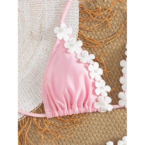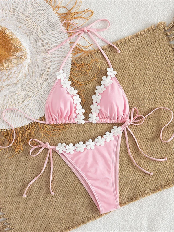 Cute Moments in Bloom Halter Triangle Bikini Set with Floral Accents