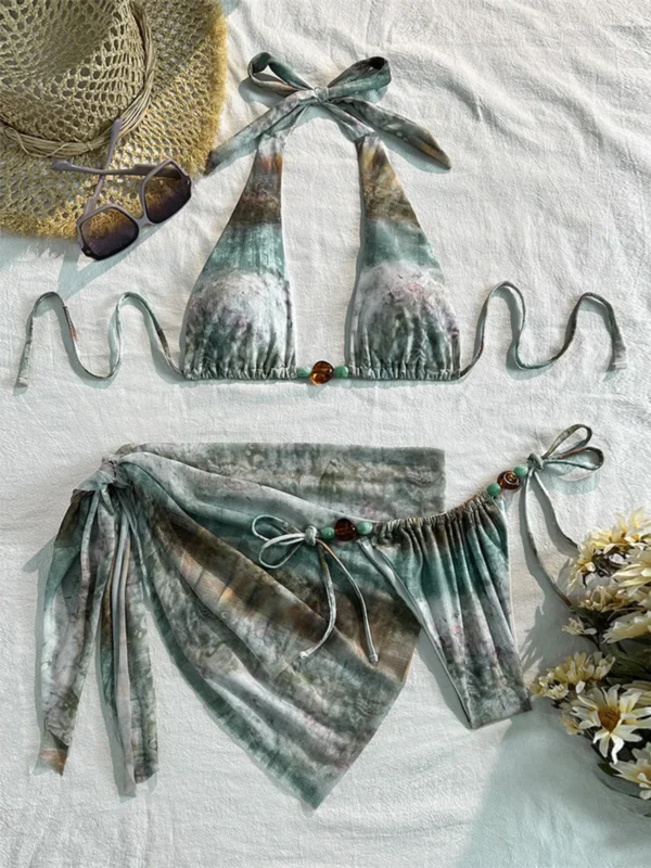 Dreamy 3-Piece Bikini Set with Chic Ties and Unique Print