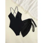 Imagine slipping into an Elegant Black Swimsuit with Chic Sarong and Strappy Detail, feeling effortlessly glamorous as you stroll along the shore. This stunning swimsuit beautifully combines sophistication and playful charm, wrapping you in luxurious comfort during your sun-soaked adventures. The included chic sarong drapes gracefully around your waist, creating an elevated beach vibe that draws all the right attention.