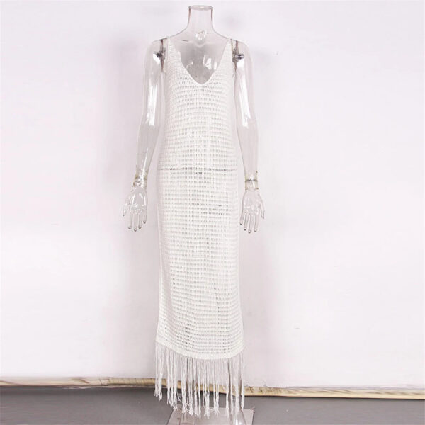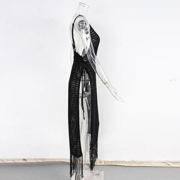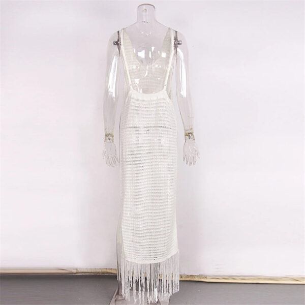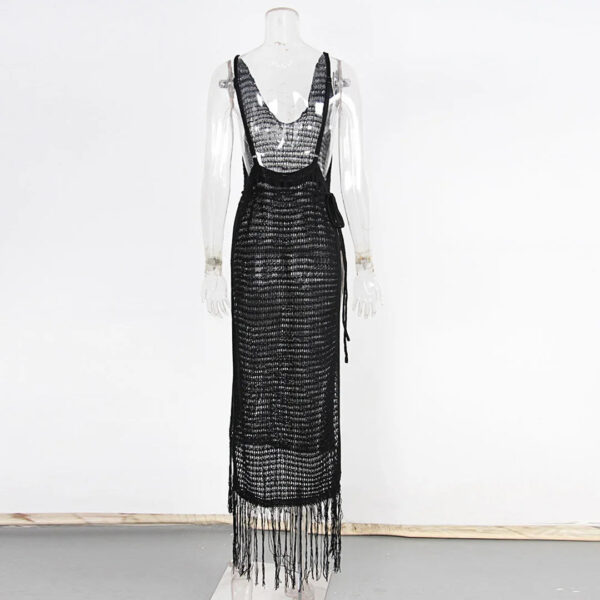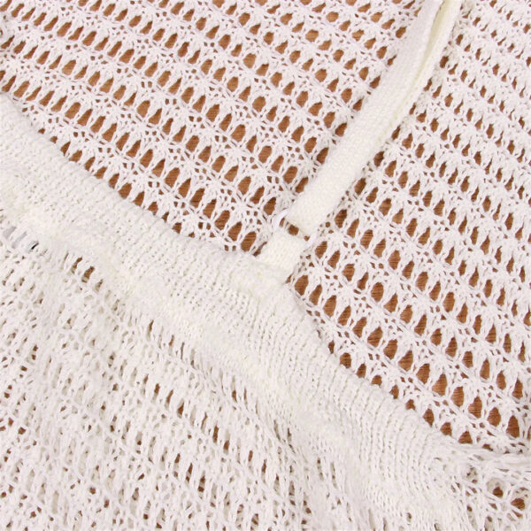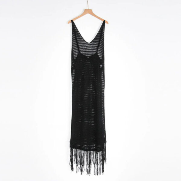 The Gabriella Fringe Open Back Crochet Beach Cover Up Dress comes in both black and white, giving you the option to choose whichever color suits your personal style. Perfect for a day at the beach or a poolside gathering, this dress will keep you looking stylish and feeling comfortable.