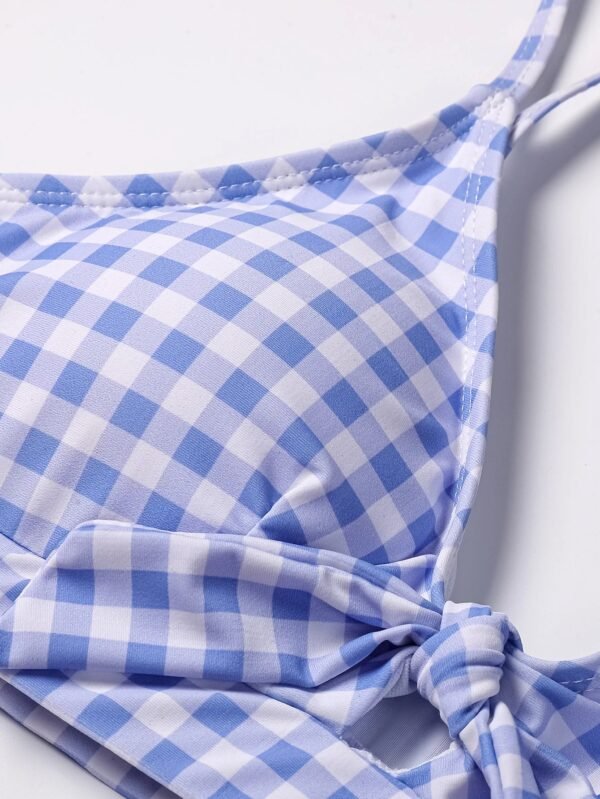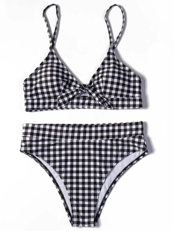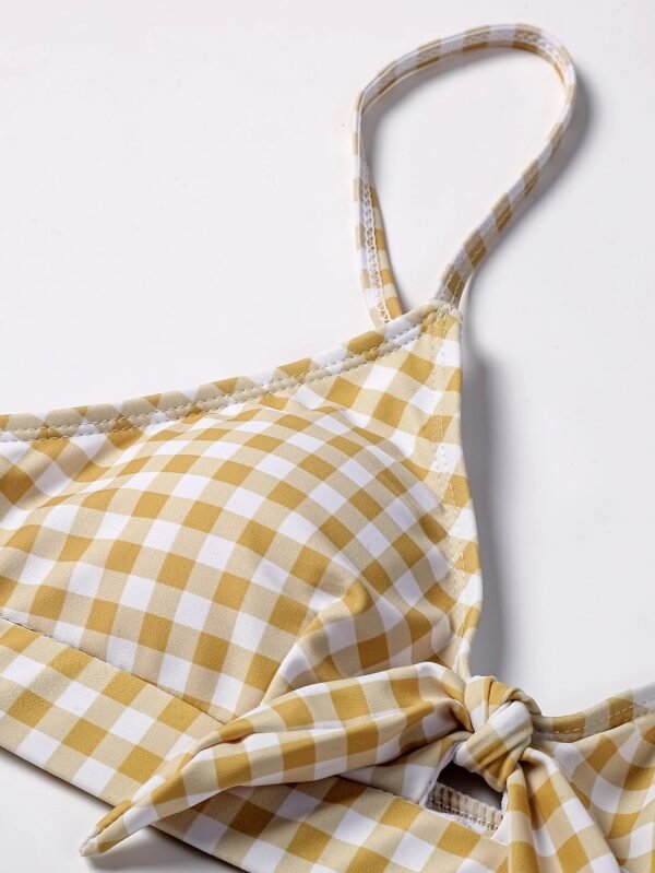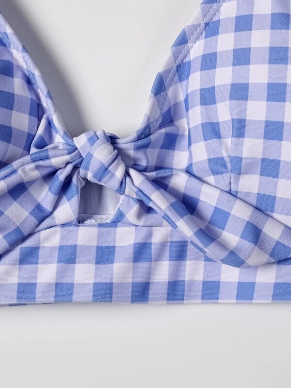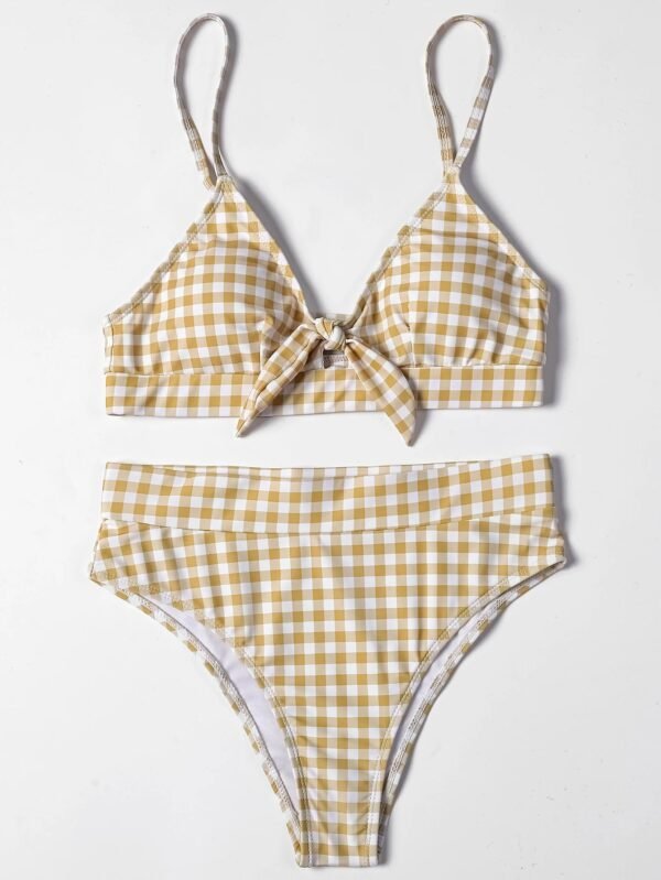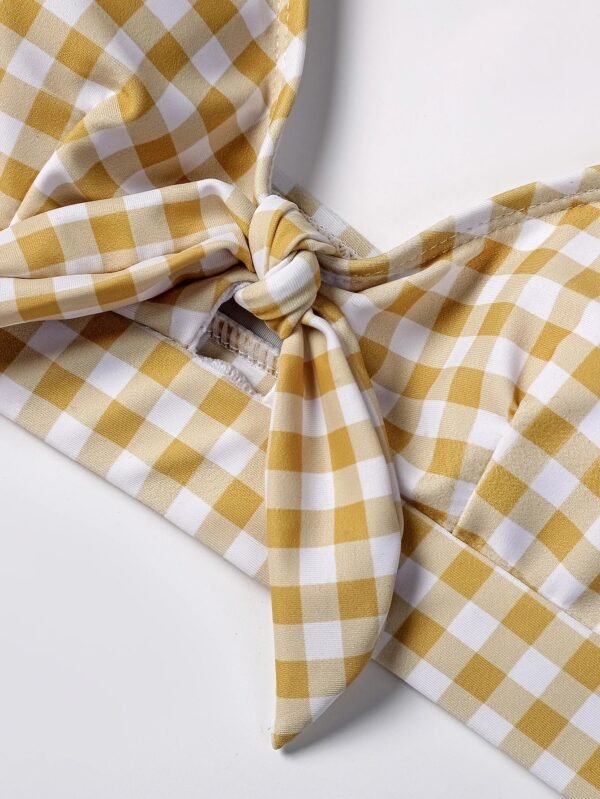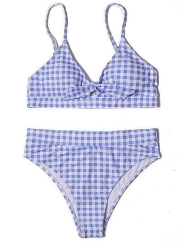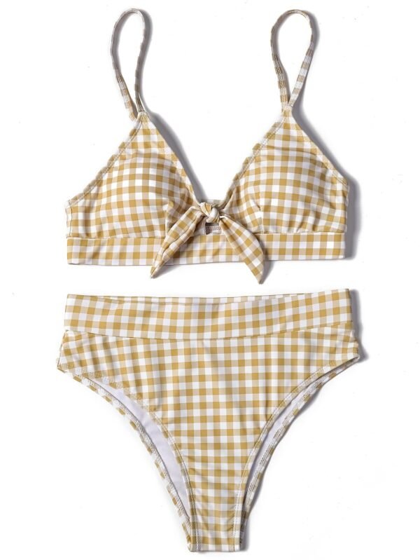 Introducing the Irresistibly Chic Plaid Bow Bikini, featuring a classic gingham pattern that exudes timeless elegance. Show off your sophisticated side in this must-have swimsuit.