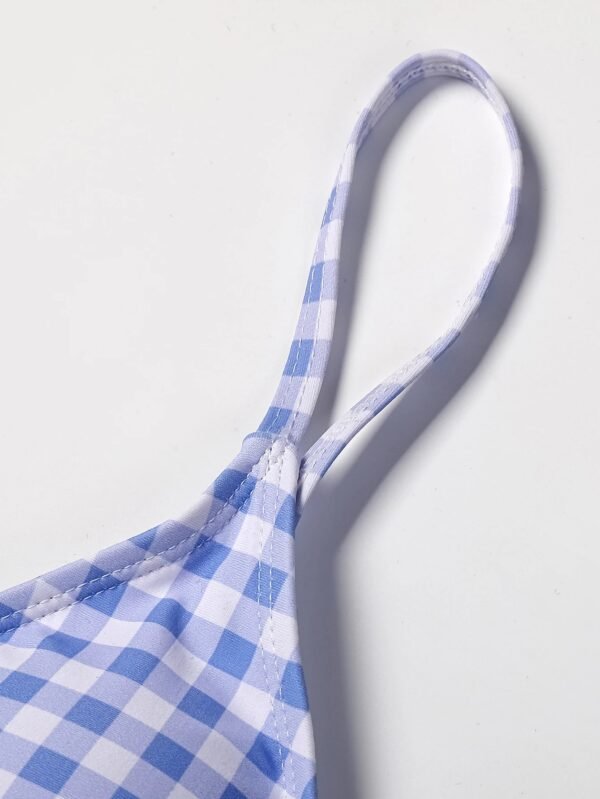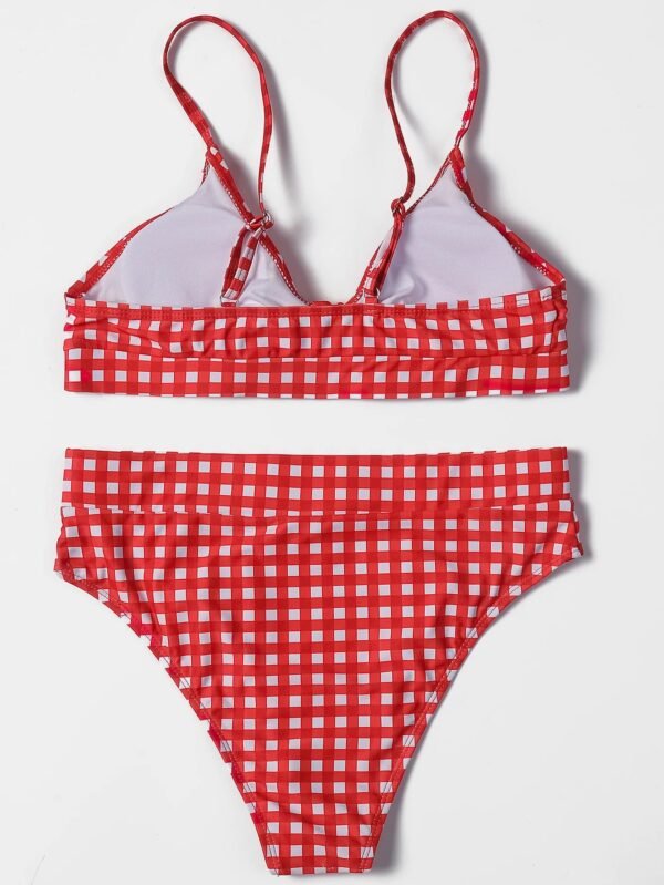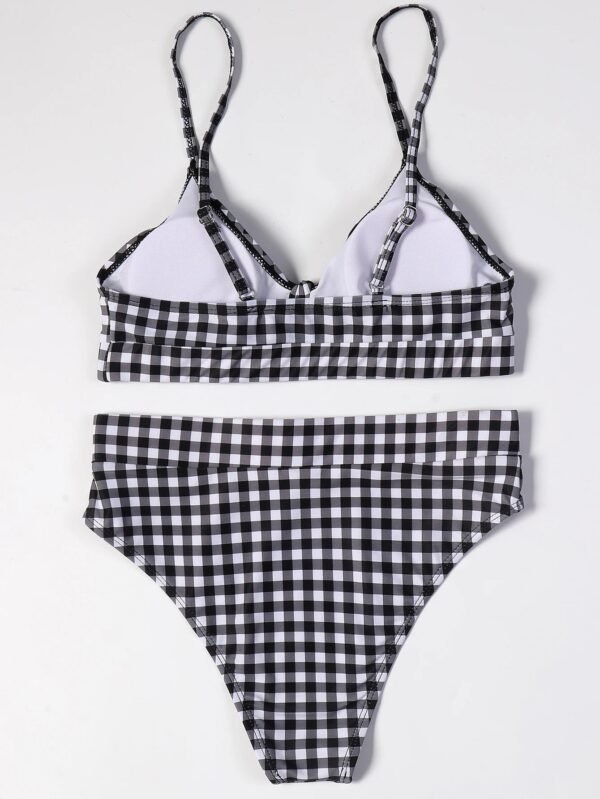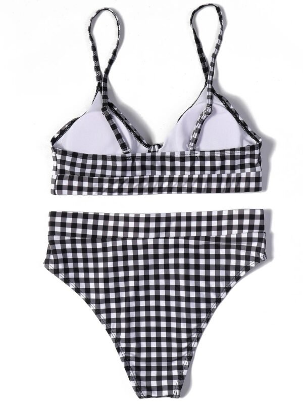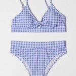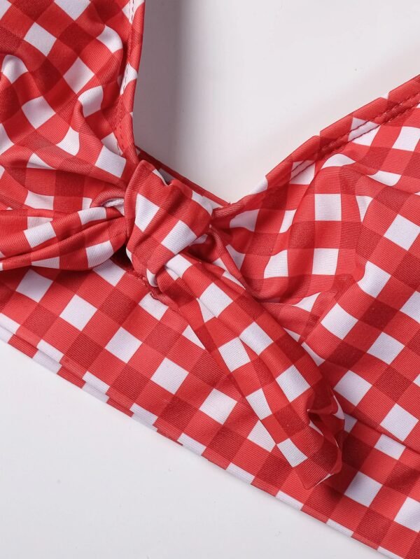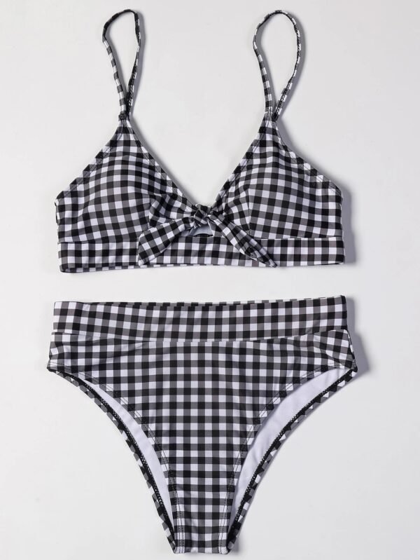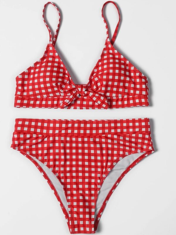 Introducing the Irresistibly Chic Plaid Bow Bikini, featuring a classic gingham pattern that exudes timeless elegance. Show off your sophisticated side in this must-have swimsuit.