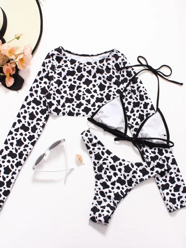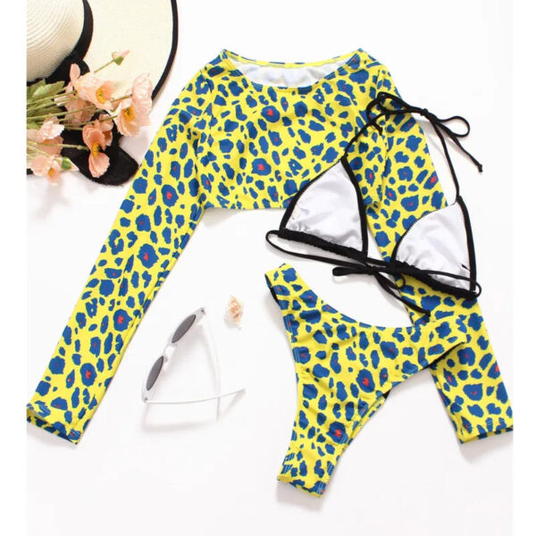 3 Piece Set Leopard Long Sleeve Cover Up Bikini