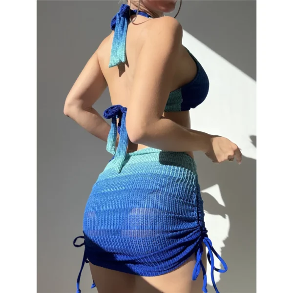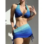 Imagine the warm sun kissing your skin while you twirl in the waves, wearing the Ocean Breeze Halter Top Bikini with Ruched Skirt Wrap. This piece effortlessly blends comfort with an unmistakable chic vibe. The halter style offers support and showcases your shoulders, while the ruched skirt wrap adds an element of playful elegance to your beach look. You’ll feel the gentle sway of the fabric as you move, making it perfect for seaside strolls and sunbathing sessions alike.