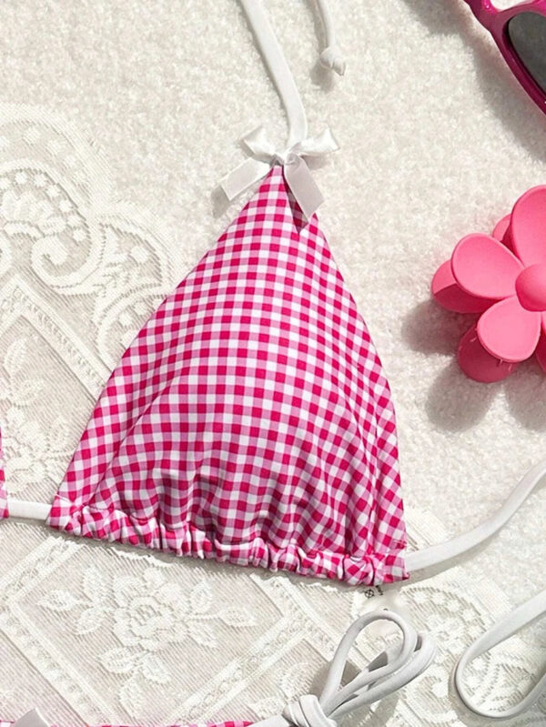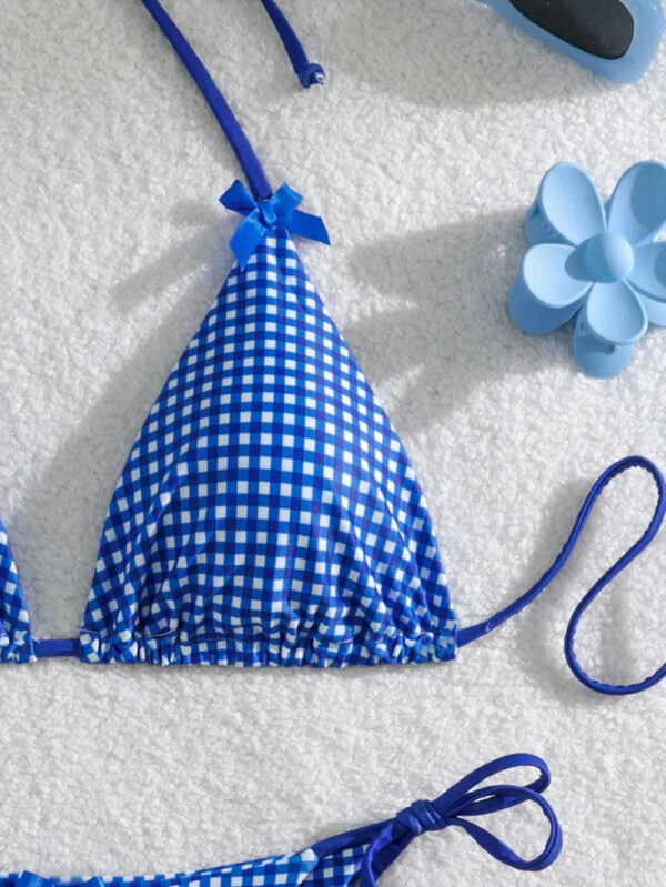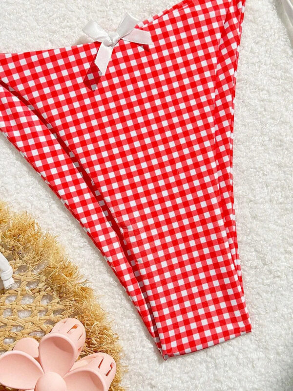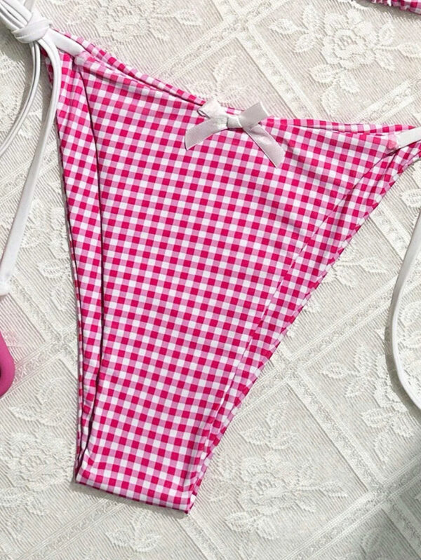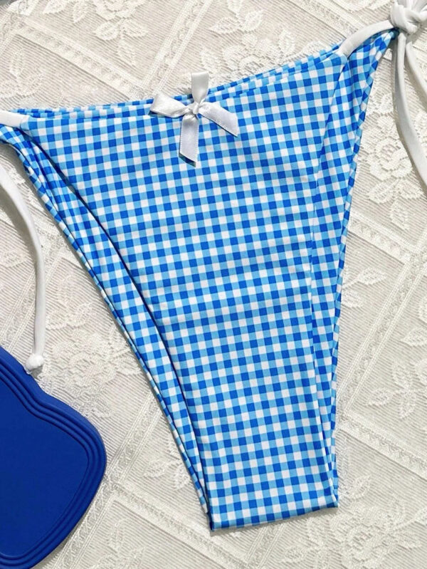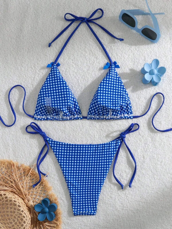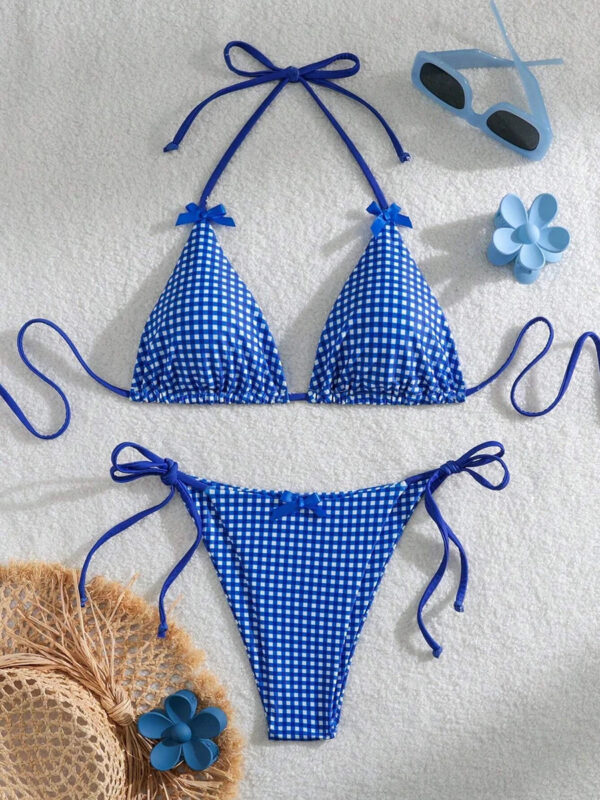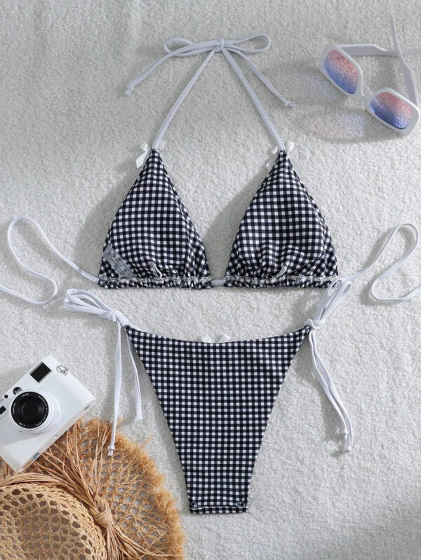 Effortlessly cute, the Sunset Charm Plaid Bikini boasts a halter style and side ties for a perfect fit. With its charming plaid pattern and available in multiple colors, you can’t go wrong with this stylish piece. Perfect for catching some rays and turning heads.