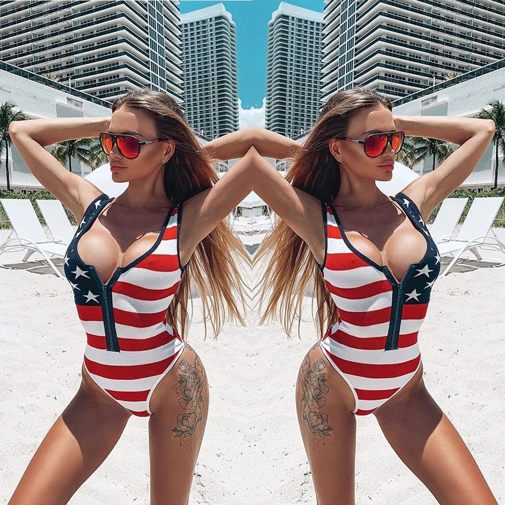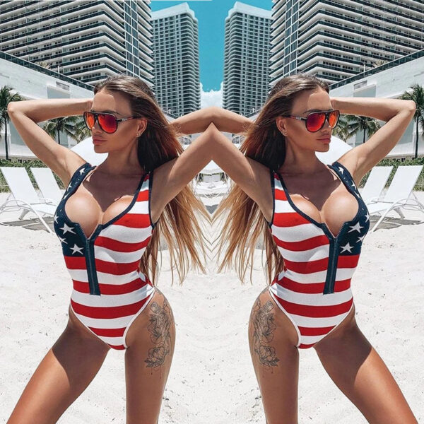 Own the Beach in Patriotic Style: The Americana Beach Bombshell Zipper Swimsuit