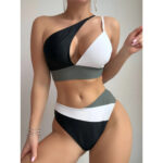 Update your summer swimwear with our Eclipse Cutout One Shoulder Bikini. Featuring a stylish asymmetrical design and bold color blocks, this bikini is sure to make a statement. The unique one-shoulder strap detail and cutouts add a modern edge. The high-waisted bottom provides moderate coverage and a flattering silhouette, while the secure back strap allows for an adjustable and comfortable fit. Elevate your beach look with this must-have bikini.