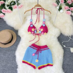 This beautiful crochet bikini set features a delicate flower design and is crafted using a knitted technique, giving it a unique and feminine look. Perfect for a summer day at the beach, you’ll love the sensation of these handmade shorts.