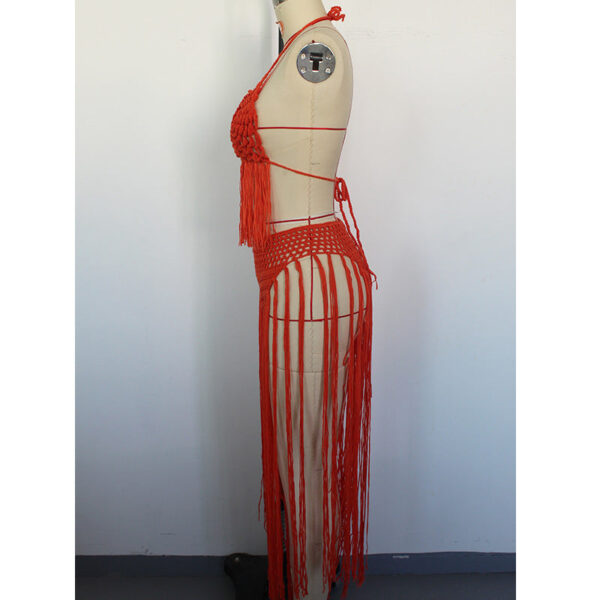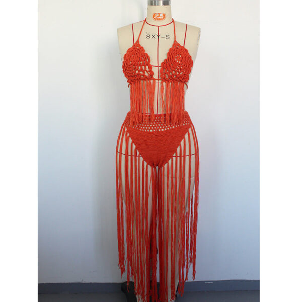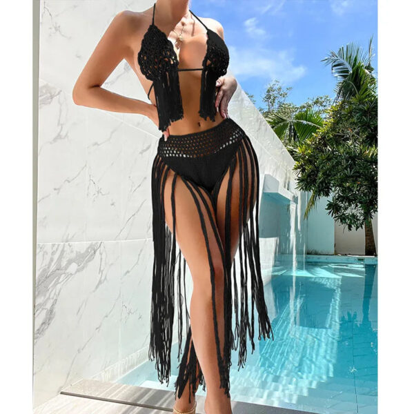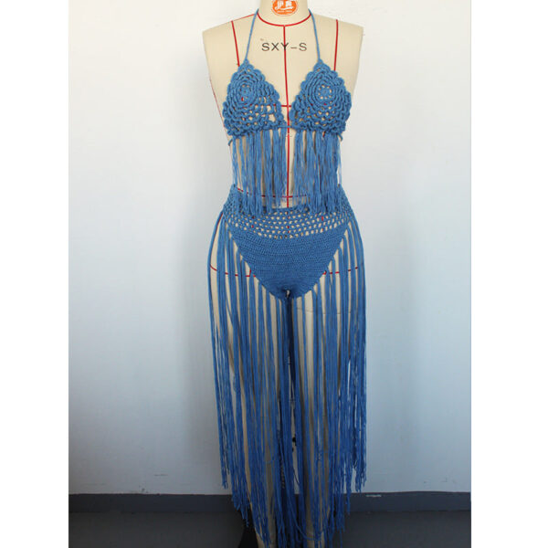 This Seaside Stunner Two Piece Knit Crochet Bikini Set features a playful fringe detail that adds a touch of flirty style to your beach look. Stay stylish and comfortable all day long in this irresistible set.