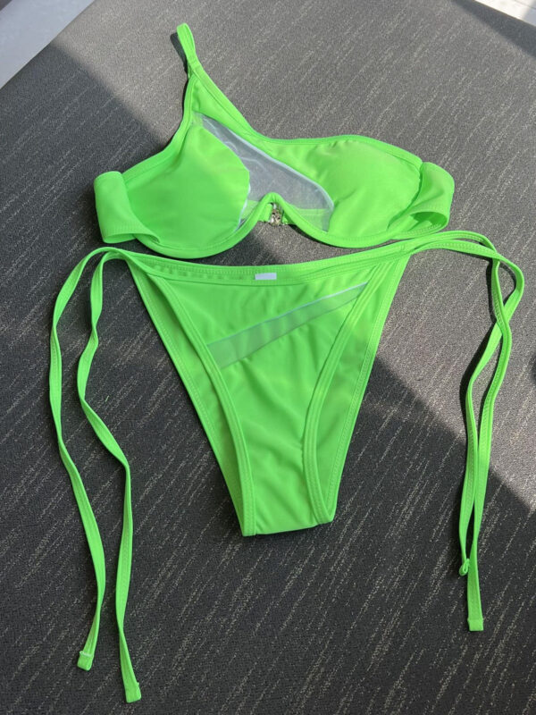Ignite the flames of desire and exude bold confidence with our Seductive Sheer Glamour One-Shoulder Micro Bikini Set. Embrace the allure of sheer elegance and make a daring statement that leaves an unforgettable impression. Buy this See Through One Shoulder Mesh Micro Bikini Set before stock runs out!