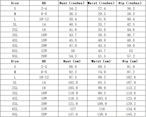 Sizes: XS-8XL