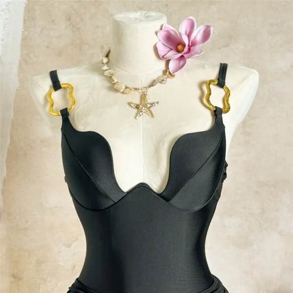 The Deep Curve Push-Up One-Piece Swimsuit with Metal Ring Detail offers an effortless confidence that radiates from within. Picture yourself lounging by the pool or wandering along the shoreline, where every glance in your reflection reminds you of your bold, unapologetic beauty.