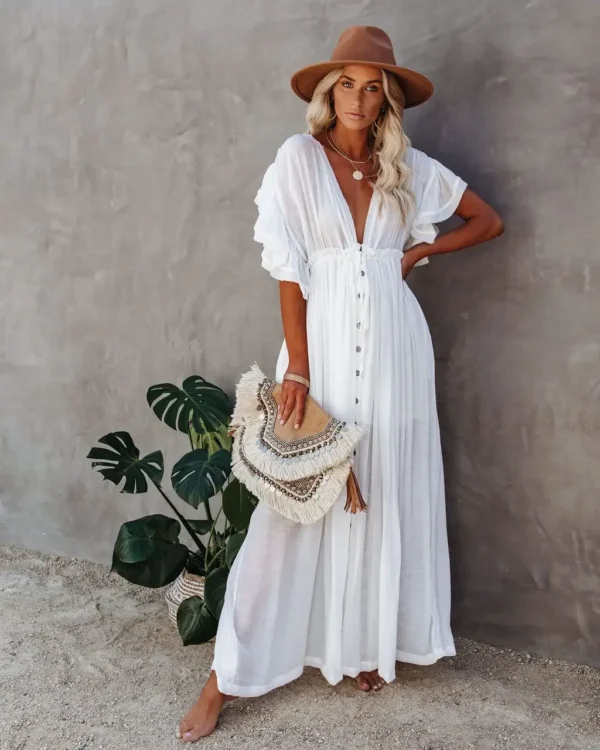 Need a cute cover up to layer over your swimsuit or bikini? Look no further. This Bikini Cover Up is both trendy and flattering, and will make you feel beautiful and comfortable at the beach or by the pool.
