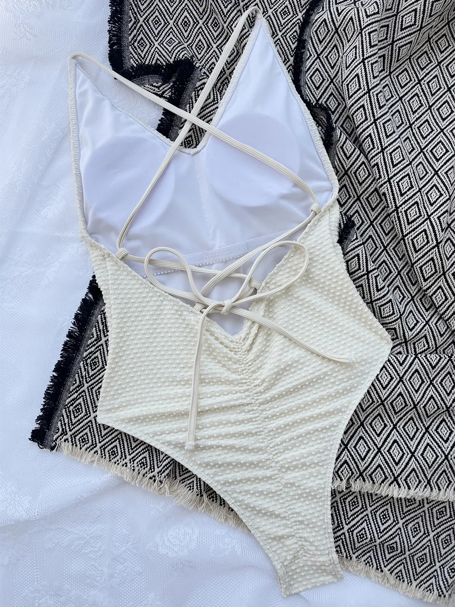 Embrace your inner goddess in our stunning one piece swimsuit. This swimsuit features an open back for a touch of sexiness and a scrunch butt detail for a flattering fit. Get ready to turn heads and feel confident all summer long.