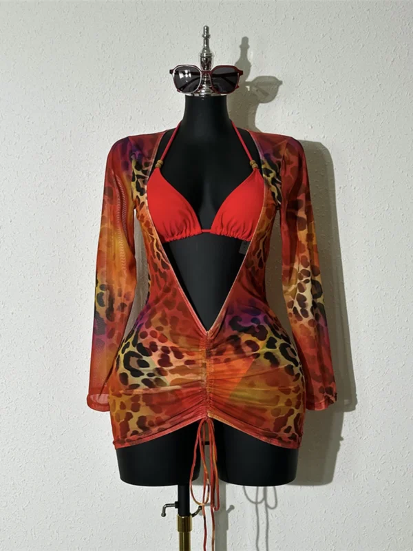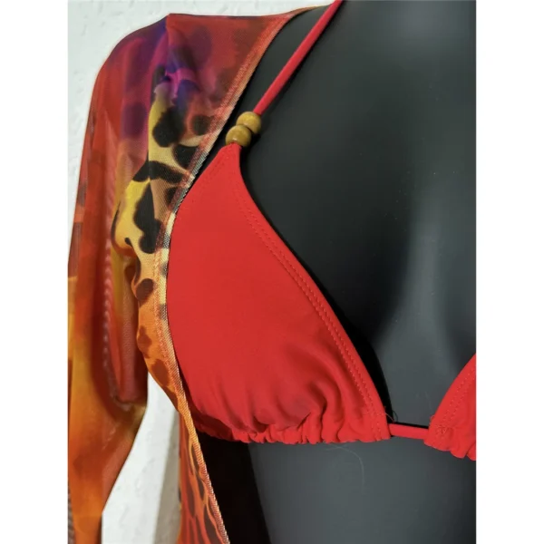 Red Leopard 3-Piece Bikini Set with Cover-Up