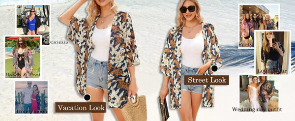Elevate your beach style with this exquisite kimono cardigan. Crafted from lightweight, breathable, and soft chiffon material, it’s the ultimate fashion companion for your spring, summer, and autumn outfits.