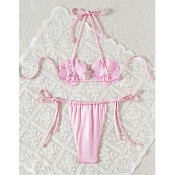 Wild But Unbothered Shiny 3D Flower Micro Bikini