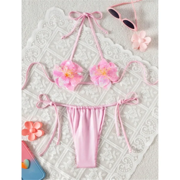 – 3D flower detail on bikini top