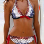 Show your patriotism this summer with our American Flag Sparkle Plus Size Halter Bikini. Featuring a classic halter silhouette and shimmering print effect, you’ll feel fabulous in the sun in this flattering and comfortable swimsuit.