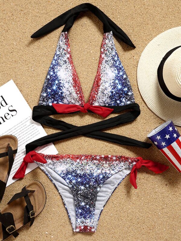 American Flag Sparkle Plus Size Halter Bikini