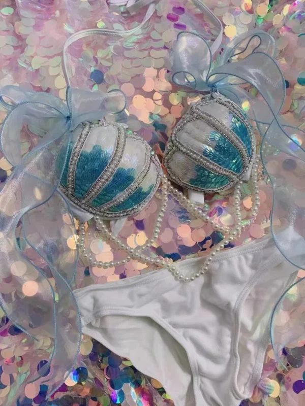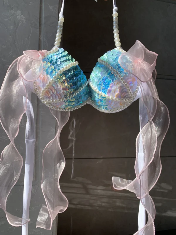 Aqua Opulence Handmade Diamond Pearl Mermaid Bikini Top