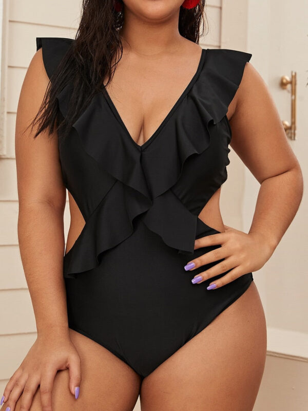 The Bahamas Delight Ruffle One Piece Plus Size is a flattering and stylish swimwear choice. It features comfortable and adjustable straps, forming a perfect fit for your body type. The ruffled accents at the neckline and back neckline flatter curves and enhance your silhouette. It is made from high-quality, lightweight fabric that is breathable and resistant to chlorine and salt water.