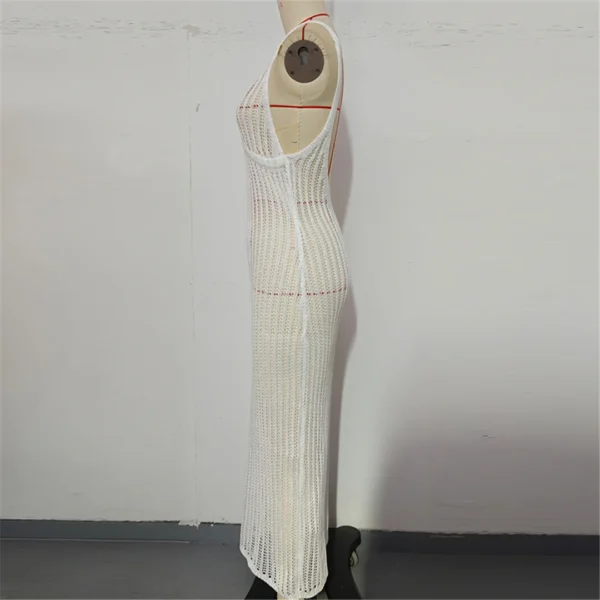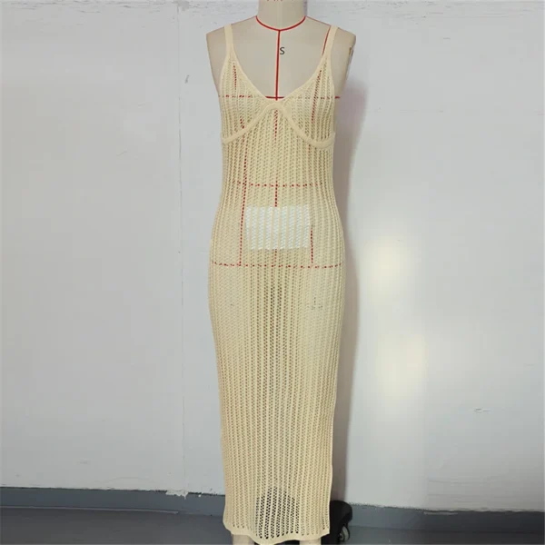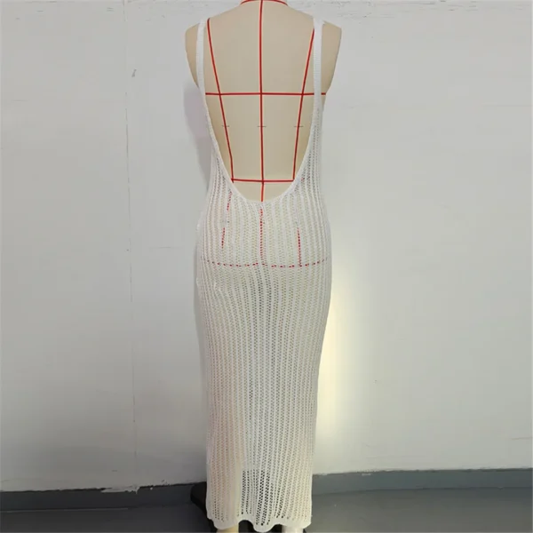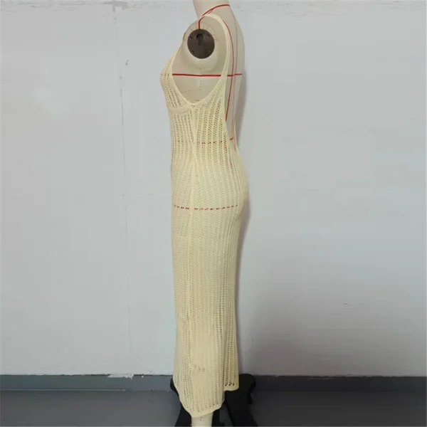 The dress features a delicate crochet pattern that beautifully showcases a hint of skin while providing just the right amount of coverage. Its flowing silhouette gently drapes over your curves, elongating your legs and embracing your figure in a way that feels inviting and enchanting. The playful design details enhance its allure, making it perfect for any occasion where you want to feel effortlessly charming.