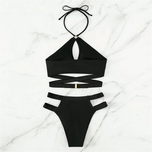 Black Cut Out Wrap Around Halter Strappy Bikini