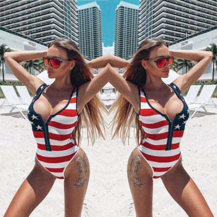 Americana Beach Bombshell Zipper Swimsuit