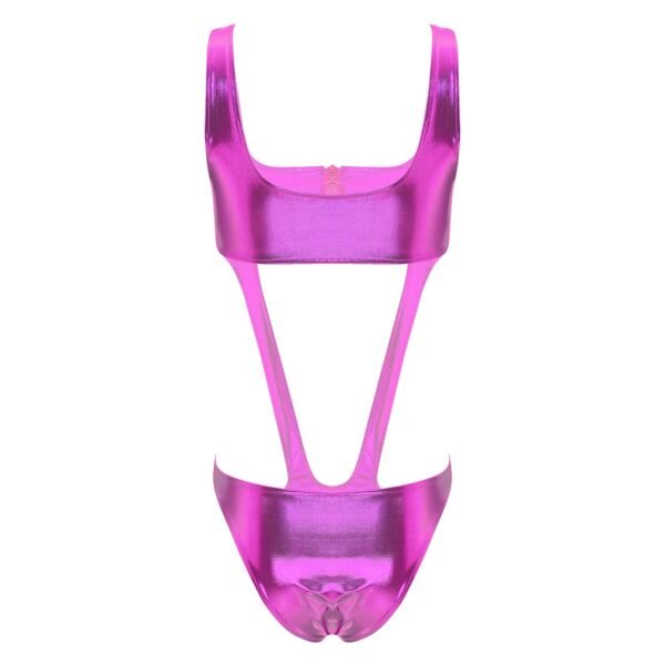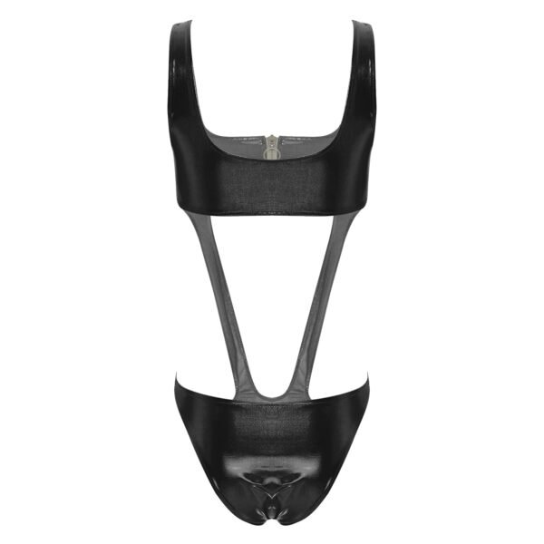 - The bodysuit features a one-piece design with a cropped tank top and briefs, sleeveless with a small front zipper for easy wear. It’s pad-free, wireless, and has a stylish cutout.