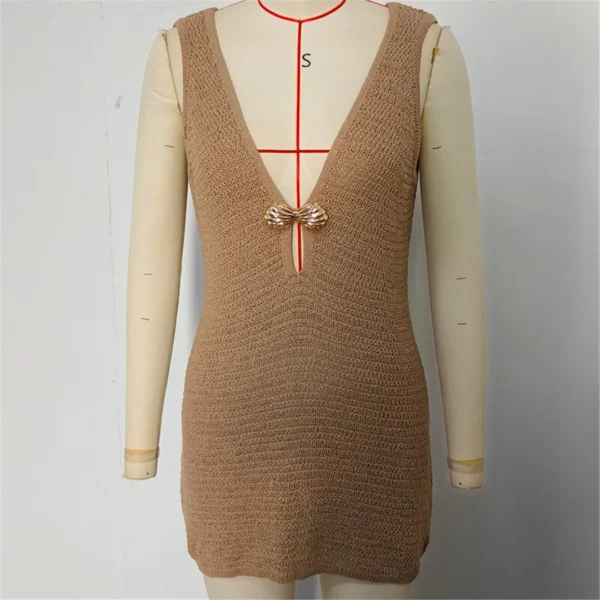Crochet Beach Cover Up Dress with Shell Accent