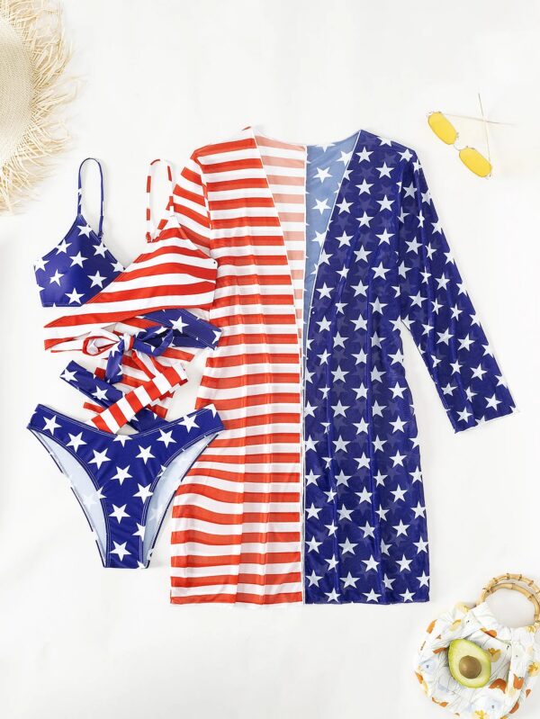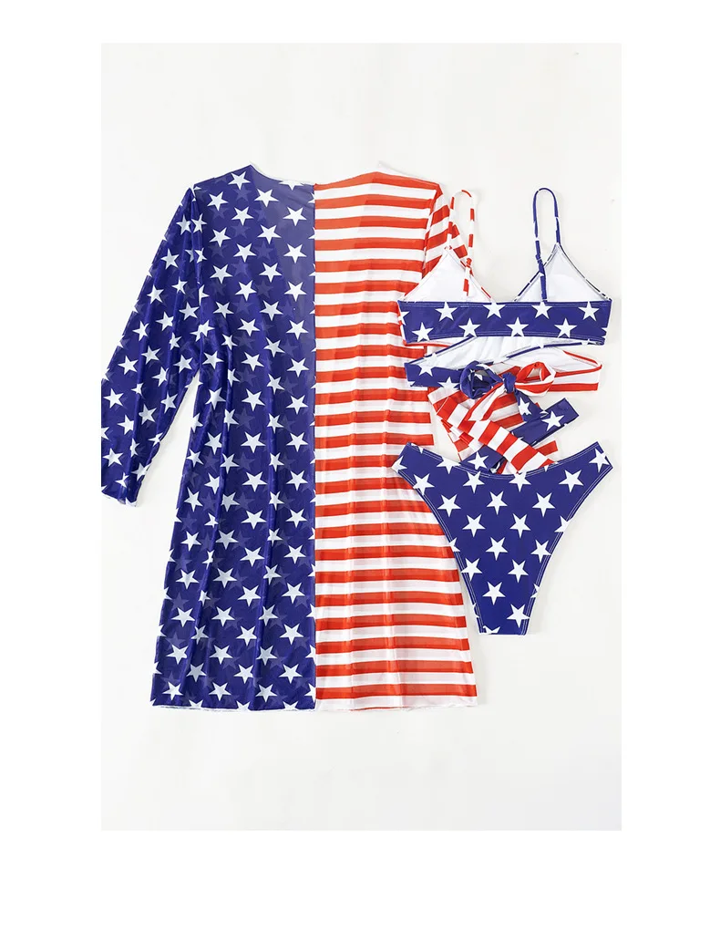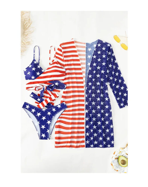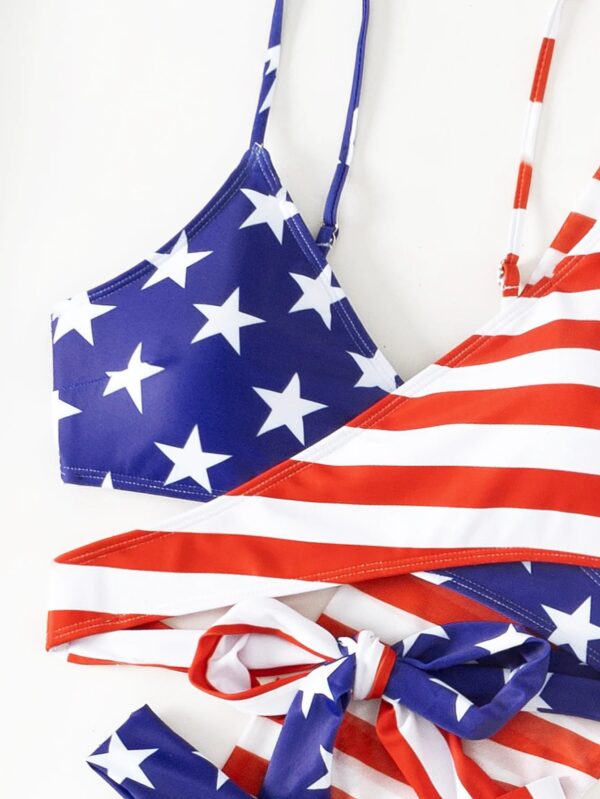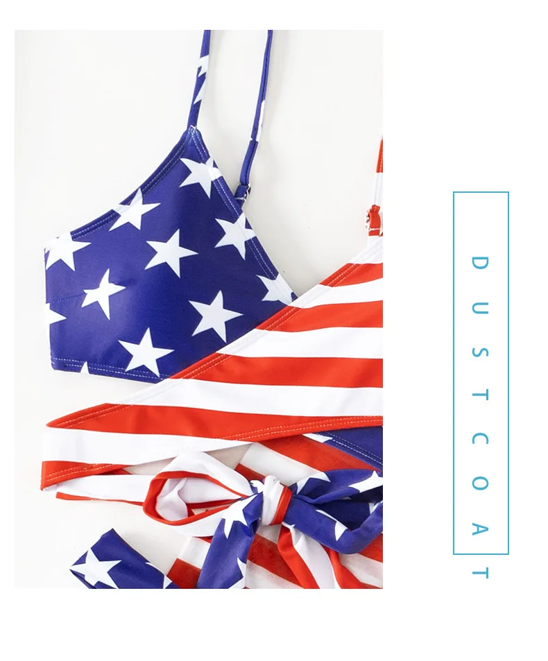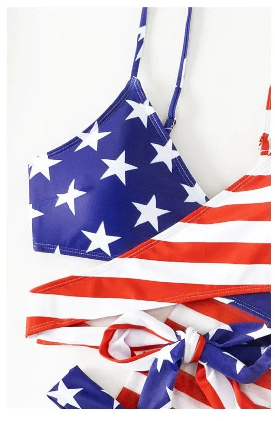 - Dazzling American Flag Design: Featuring a vibrant American flag print, this two-piece bikini proudly displays your love for the USA.