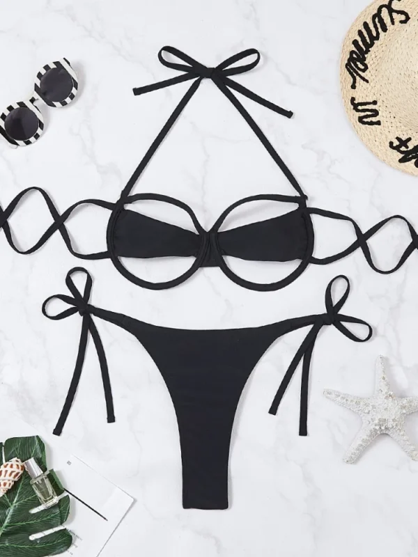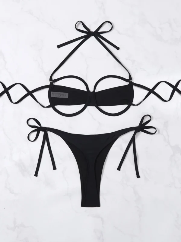 Black Hollow Out Cut Out Underboob Micro Bikini