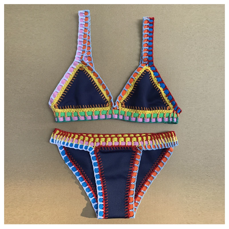 This Navy Dreams Crochet Neoprene Bikini is a one-of-a-kind look that is sure to turn heads. Its sexy design and flattering fit make it a perfect choice for summer days near the beach or pool. Enjoy the ultimate swimwear experience with Navy Dreams!