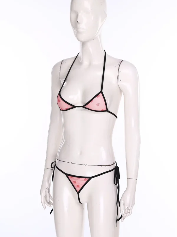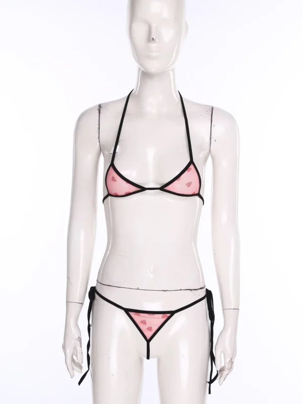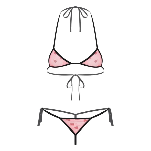 Embrace the ultimate barely-there look with our Pink Heart Mesh Bikini. Designed for the bold trendsetter, this set micro thong set features delicate, breathable mesh fabric adorned with sweet heart motifs. Whether you’re lounging at a private pool or layering for a daring festival look, this see-through set offers a flawless blend of cute and alluring.