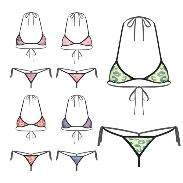 • Micro Coverage: Classic triangle top and G-string bottoms designed for maximum sun and minimum tan lines.