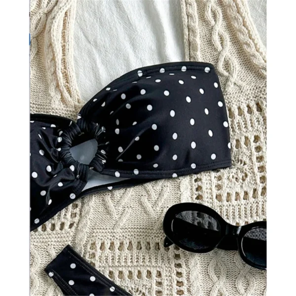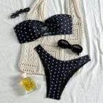 Stepping into the sun while wearing the Polka Dot Bandeau Bikini, you’ll immediately feel the playful charm and effortless chic of this stunning swimwear piece. Picture yourself enjoying a leisurely day at the beach, the soft ocean breeze tousling your hair as you soak in the golden rays—this bikini embodies that carefree spirit.