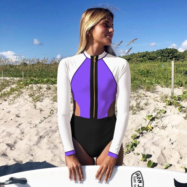 Get ready to dive into the waves with our Ready, Set, Dive! Rashguard Swimsuit. This one-piece features a zipper, cut out details and long sleeves, perfect for surfing and other watersports. Stay protected from the sun while enjoying your favorite activities in style!
