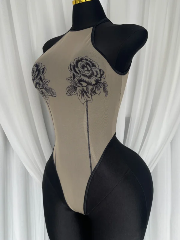 Shadow Rose Mesh See Through Thong Swimsuit