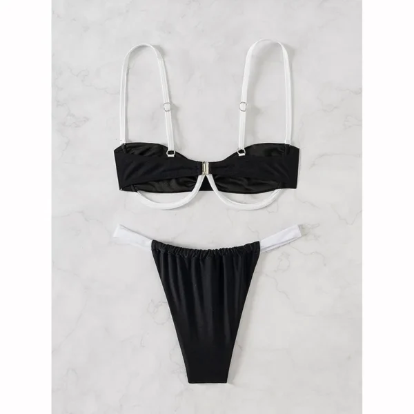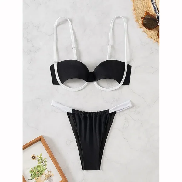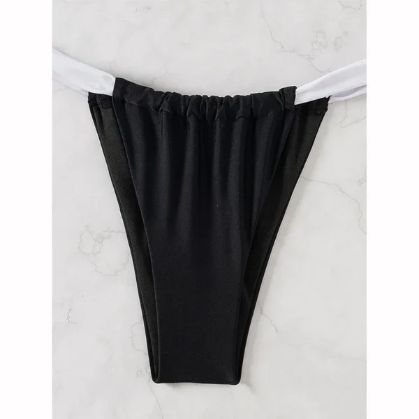 The top features a unique cut that showcases your silhouette with a dynamic twist, highlighting that perfect sun-kissed glow. With its bold black and white color palette, this bikini radiates a classic vibe that feels fresh and modern. Adjustable straps allow for a customized fit, ensuring comfort while you dive into spontaneous swims or lounge under the golden hour sun.