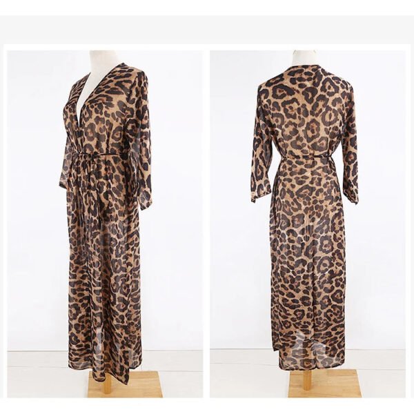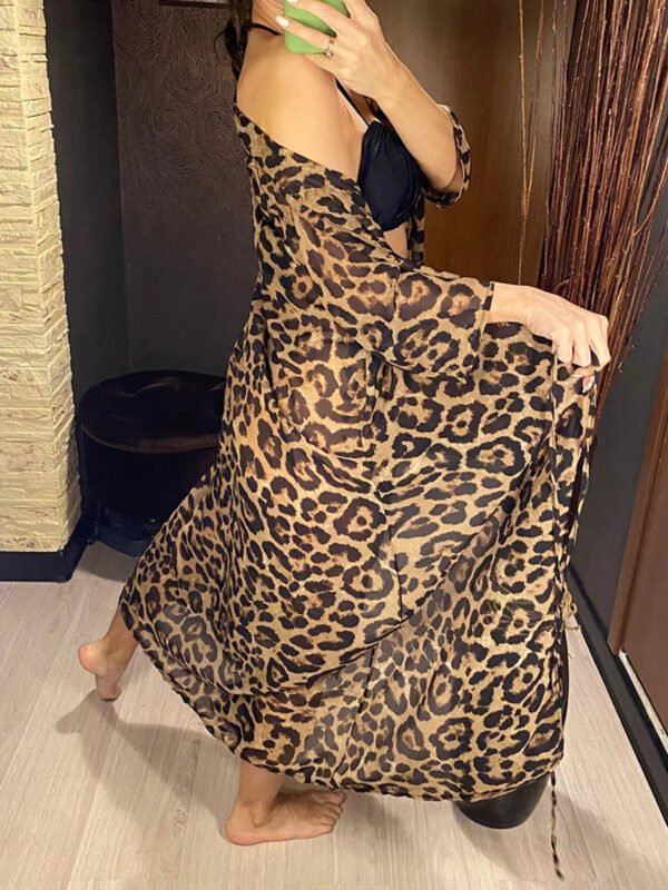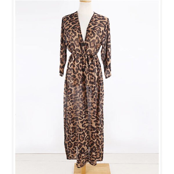Stay stylish and comfortable at the beach with our Sunset and Swim Long Leopard Beach Cover Up. Made with a lightweight and breathable fabric, this cover up is perfect for throwing over your swimsuit for a fashionable and effortless look.