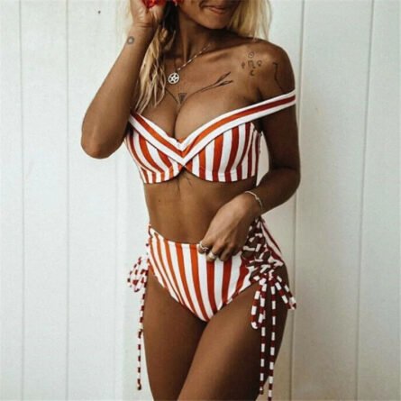 Summertime Sensation Striped High Waisted Cut Out Lace Up Tie Side Bikini