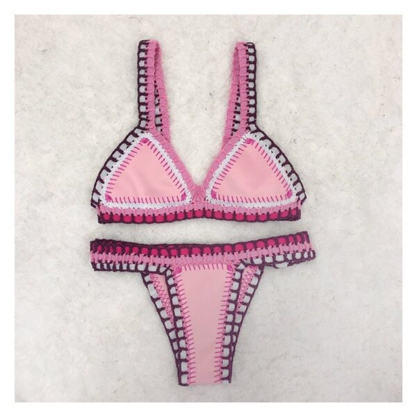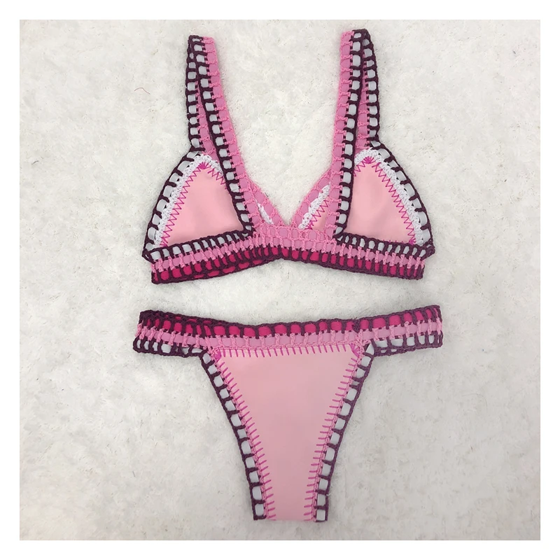 Sunset and Swim Sexy Handmade Neoprene Crochet Pink Bikini Set