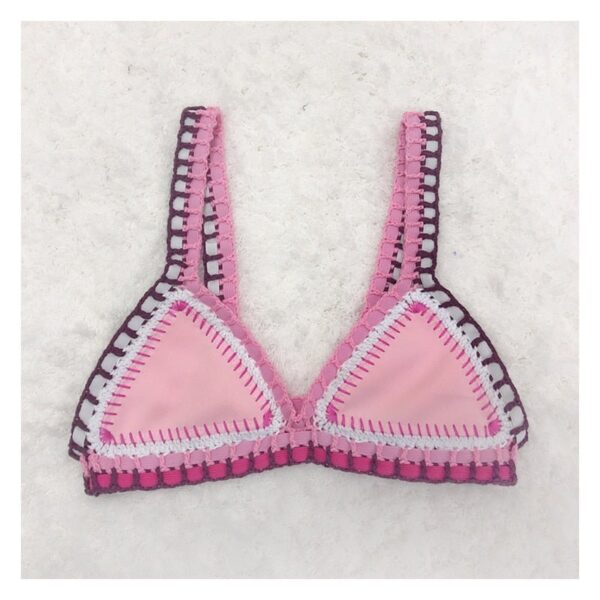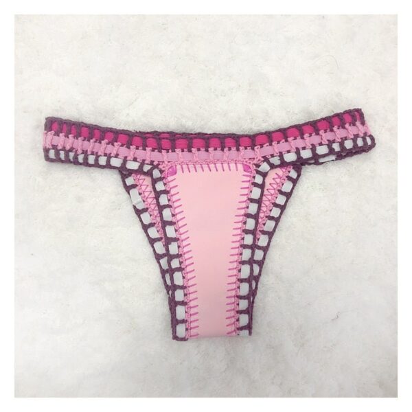 Look your absolute best in this beautiful and unique handmade neoprene crochet pink bikini set. Enjoy a stunning sunset and take a daring swim in style.