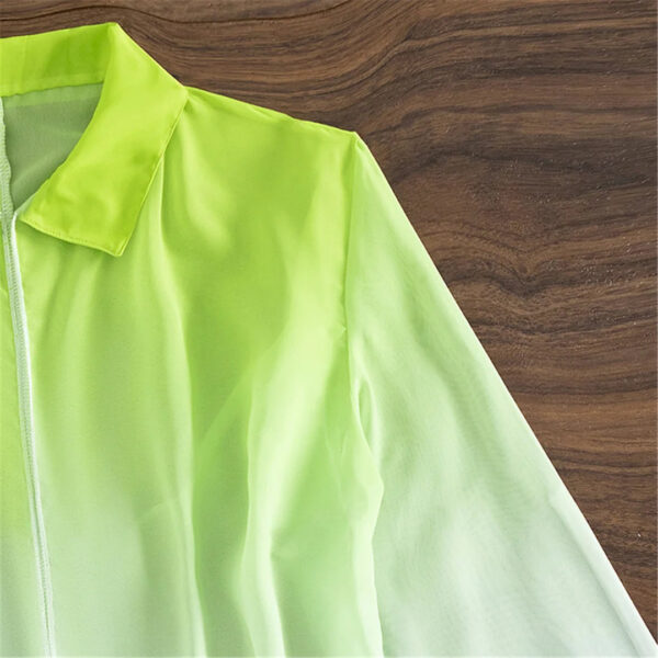Conquer the beach in style with our Sunshine Gradient Long Sleeve Beach Cover Up Shirt. The beautiful white and green gradient adds a stunning touch to your outfit, making you stand out from the crowd. Stay protected from the sun while looking effortlessly chic.